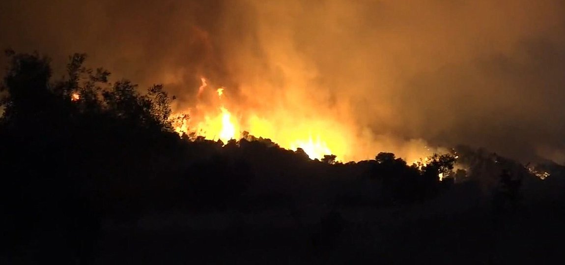 Πύρινη κόλαση σε Βαρυμπόμπη και Αδάμες, όπου εξακολουθεί να μαίνεται ανεξέλεγκτη η πυρκαγιά που ξέσπασε νωρίς το μεσημέρι της Τρίτης, με πολλά